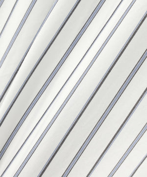 コットン100%のブロード素材に、ストライプ柄を配したシャツ。縦密度を高めることで柄がくっきりと際立ち、バイオ加工によるさらりとした肌触りと、毛羽の少ないなめらかな表面感が特徴。