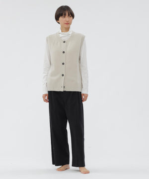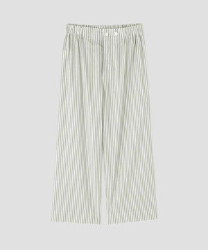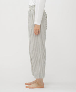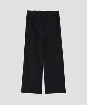 フロントに2つのボタンを配したメンズトランクス由来のディテールが特徴。ストレートシルエットに、くるぶし丈を組み合わせた軽快なバランスの一本。