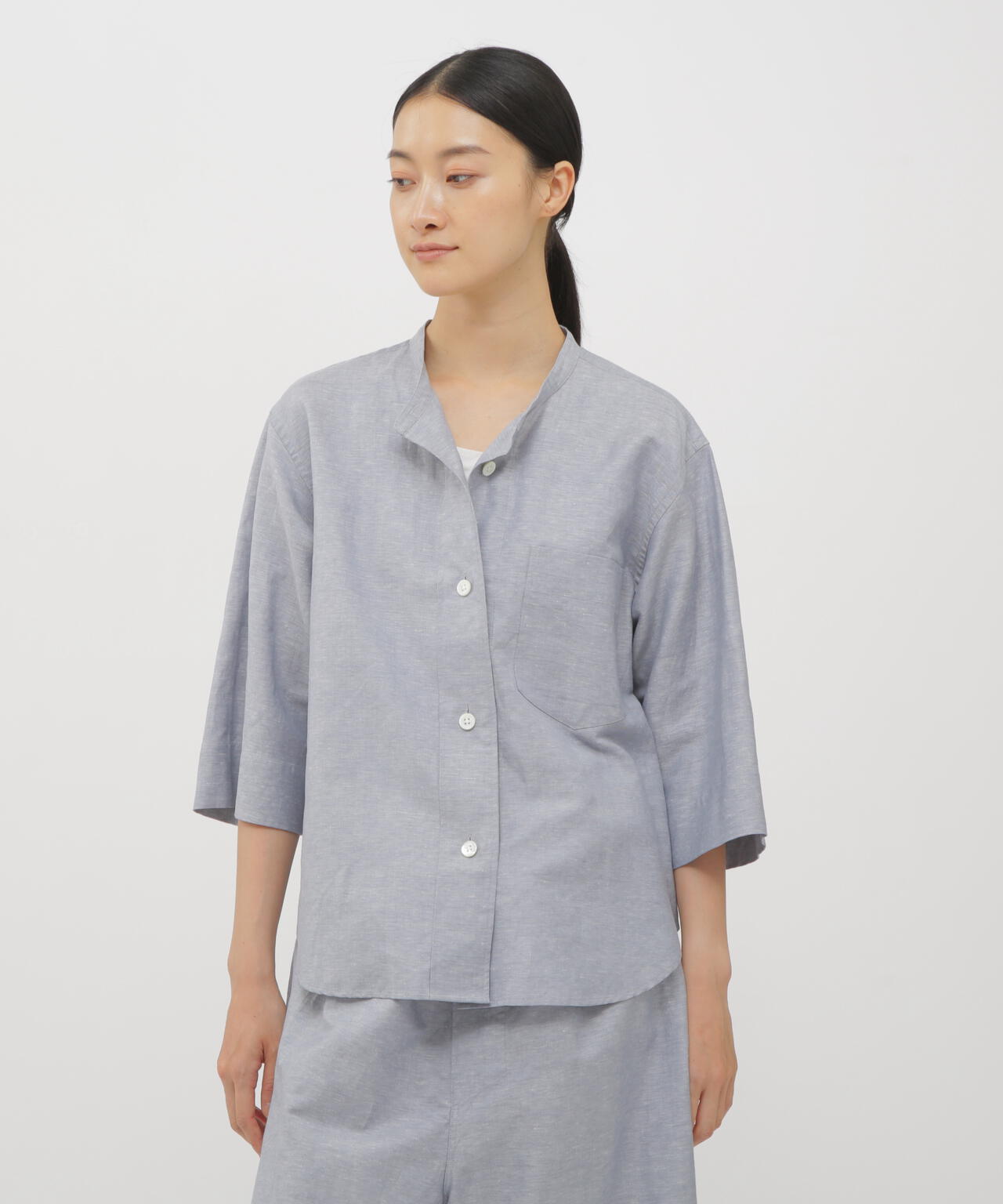 コットンとリネンを組み合わせた、軽やかでドライなタッチのシャンブレーシャツ。柔らかな質感と、肌になじむ自然な風合いが特長。
