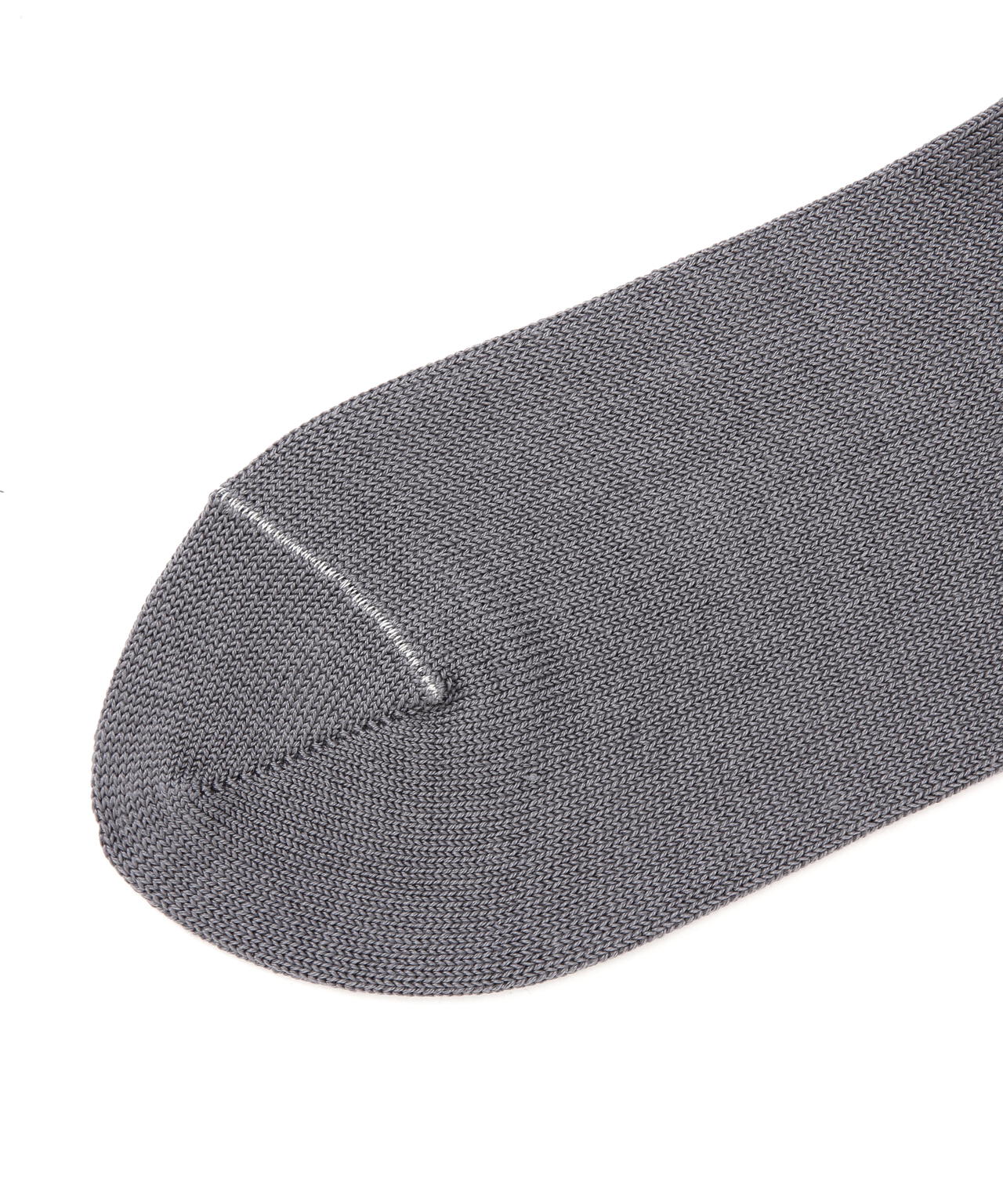 シルク100%の、なめらかな肌触りと自然な光沢が特徴のソックス。ややリラックスフィットで長めのデザインに、後ろにはHGのアイデンティティーであるタブ付き。室内でも快適に過ごせる一足。