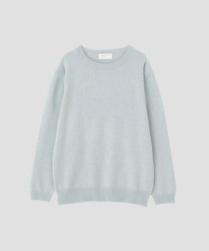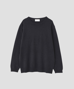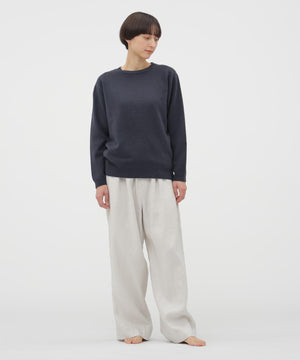 弾力とふくらみのあるニュージーランド産の極細メリノウールと、温かみのある反毛コットンを組み合わせたオリジナル素材を使用したニット。ウールとコットンの色差や質感の違いが自然な表情を生み、奥行きのある仕上がり。