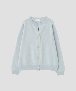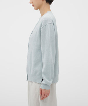 弾力とふくらみのあるニュージーランド産の極細メリノウールと、温かみのある反毛コットンを組み合わせたオリジナル素材を使用したカーディガン。 ウールとコットンの色差や質感の違いが自然な表情を生み、奥行きのある仕上がり。