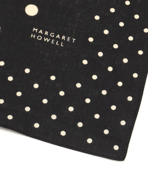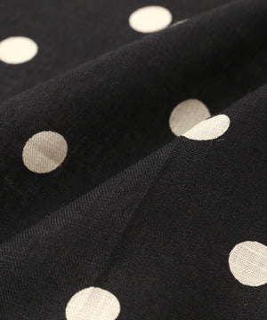 外側と内側でスポット柄の大きさにコントラストをつけたデザインが特徴で、コシのあるリネン素材は繰り返しの洗濯にも耐え、使い込むほどに風合いが増す仕上がり。