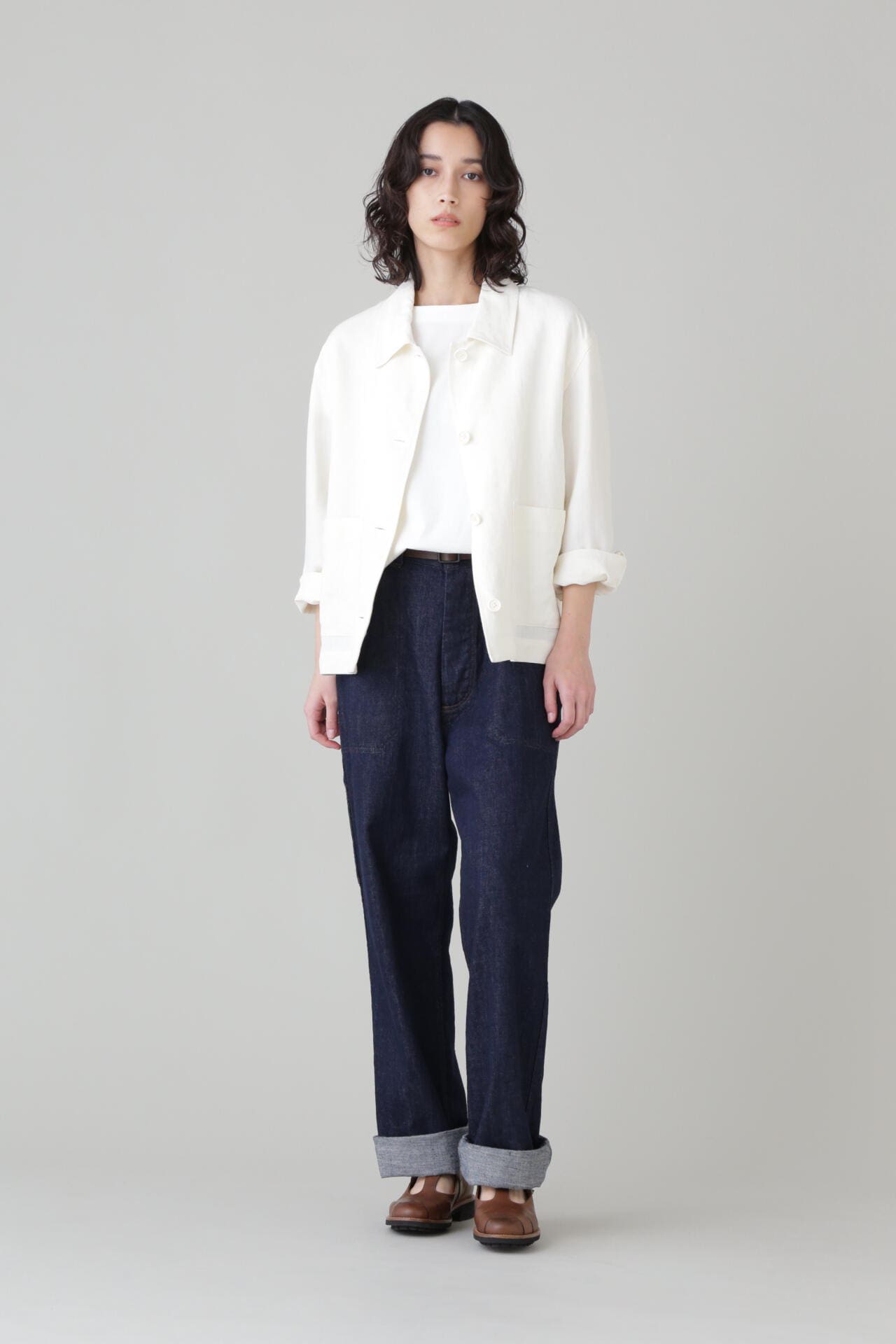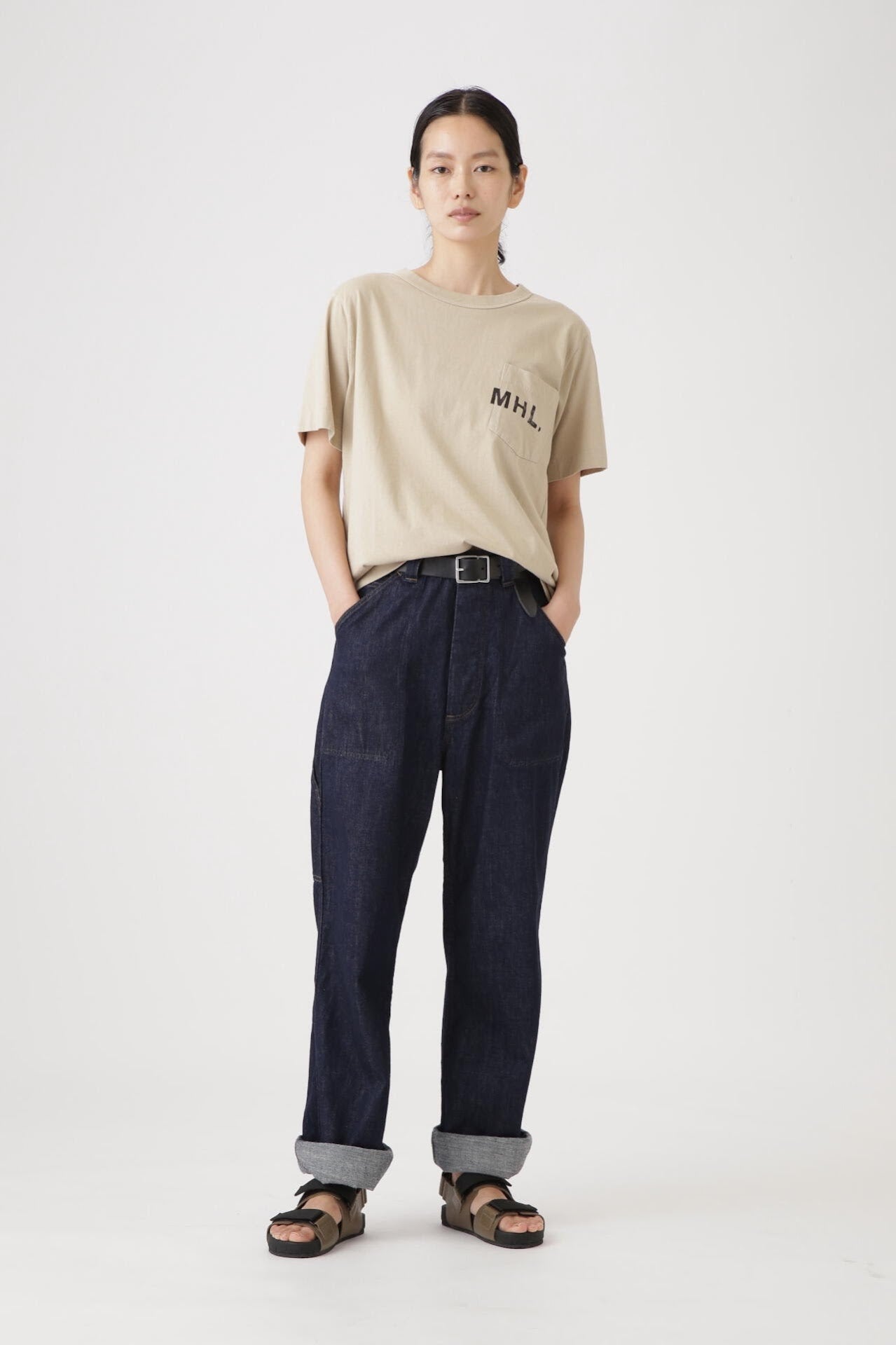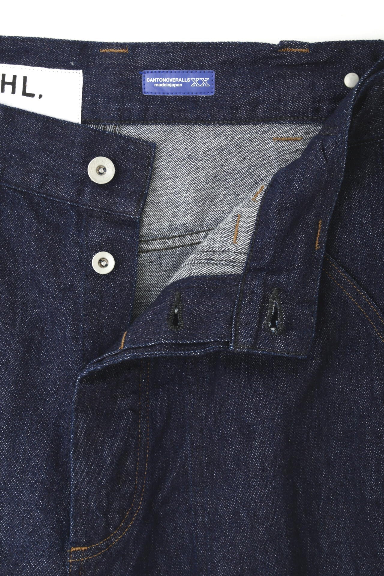 CANTONは 1963年に日本で初めてアメリカ産に引けを取らない本格国産ジーンズとして誕生。MHLでは不均一なネップが特徴のCANTONオリジナルの生地を使用。ネップが相まってワークウエアらしい粗野感のバランスが良く、履き込む程に現れるタテ落ちが特徴。