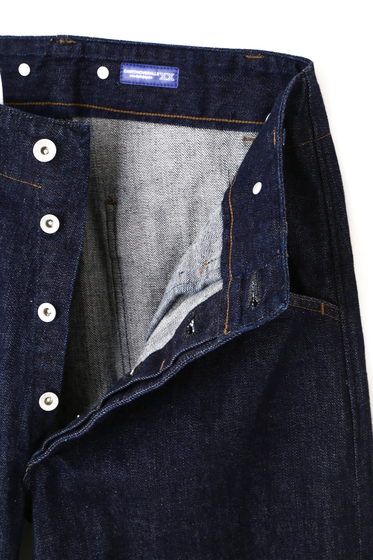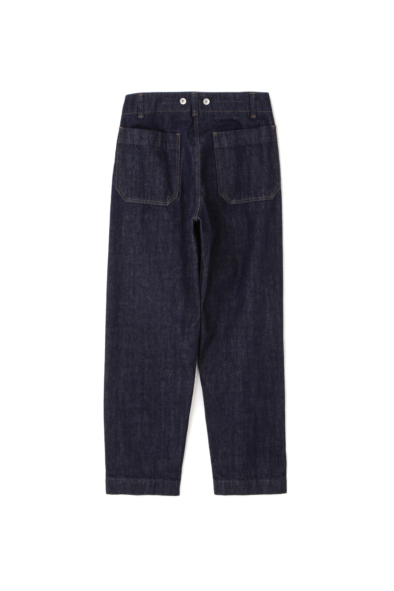 ミリタリーとワークウエアの要素をミックスしたデニムトラウザーズ。仕様では、美しい裏の始末や金茶ステッチとネイビーステッチの2種類のステッチ糸をディテールに合わせて使い分けており、細かなディテールだが、その拘りこそCANTONならではのものづくりの象徴。