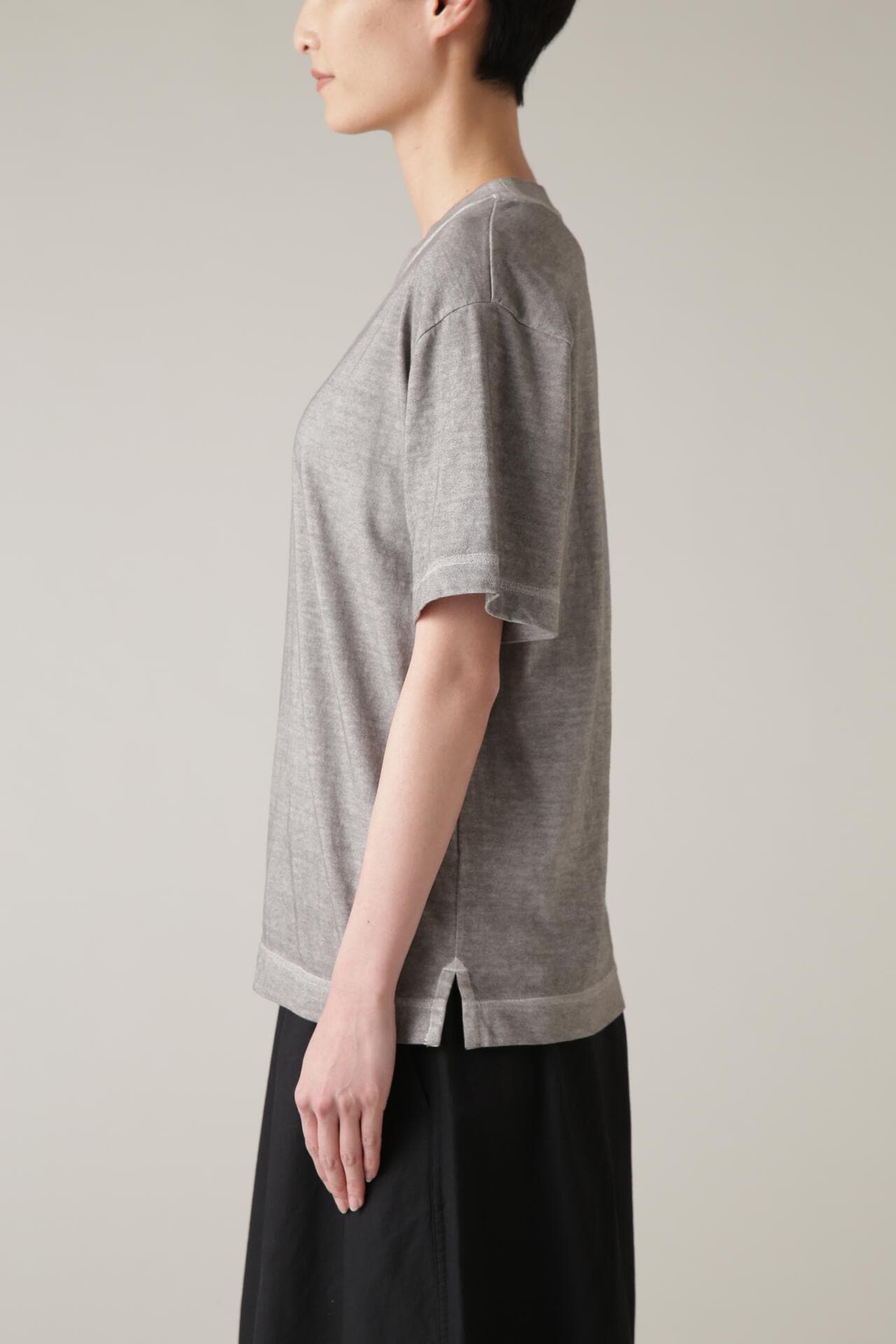 異なる産地のコットンをブレンドした天竺素材のジャージー。それぞれのコットンの特徴を活かしたナチュラルな風合いがポイント。リラックスしたバランスの良いシルエットに広い襟幅がブランドらしいキャラクターをプラス。自然染料で染色した一色展開。