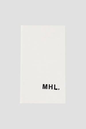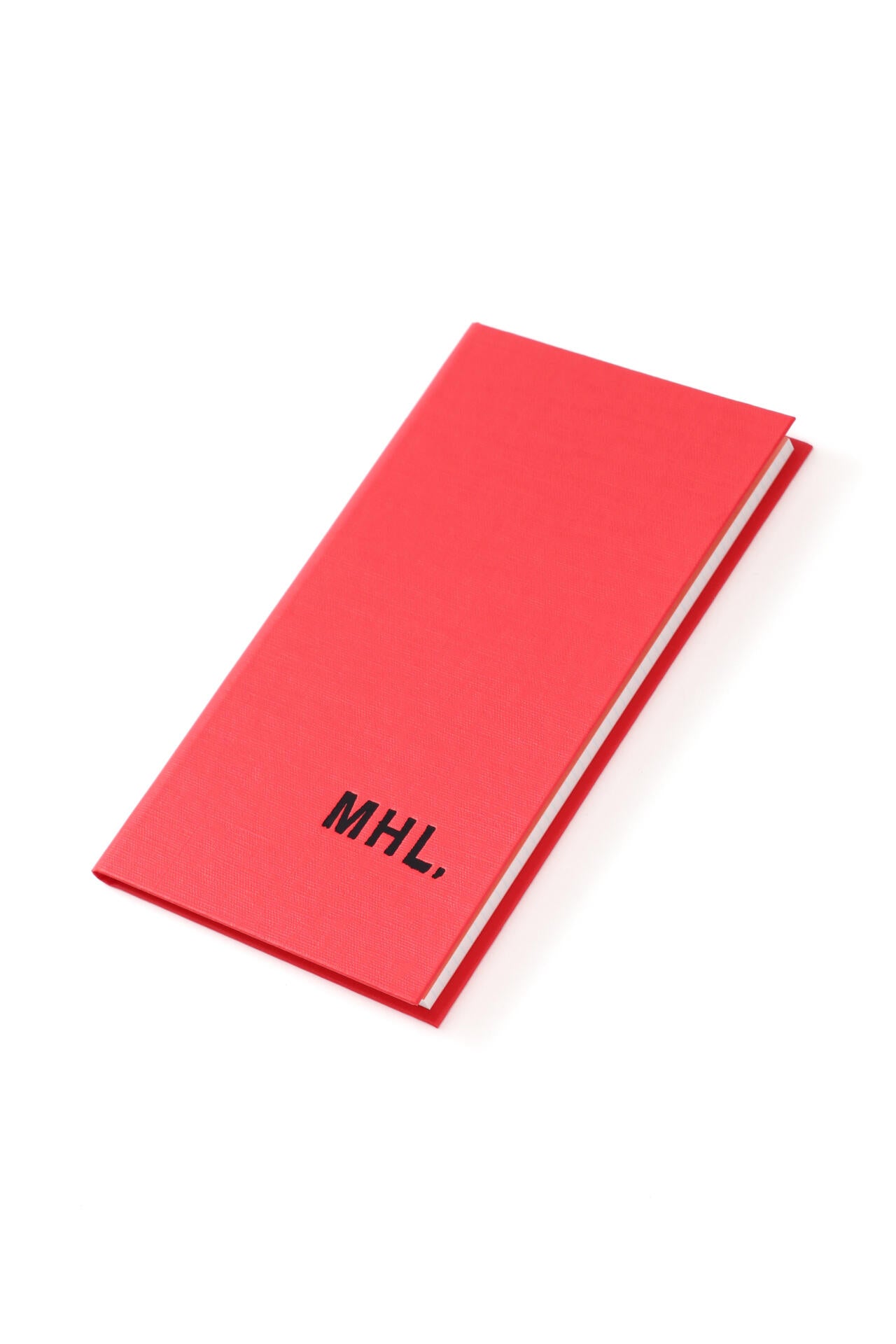 KOKUYOへ別注したノートブック「測量野帳」。「測量野帳」は1959年に測量士のノートとして作成され、屋外でも筆記しやすいよう丈夫で耐久性のある表紙を使用。作業着のポケットに合わせたスリムでコンパクトなサイズも特徴的。MHL.がセレクトした3色展開で、表紙にはMHL.のブラックのロゴをプリント。