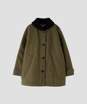 ヴィンテージのパイロットジャケットから着想を得たデザインで、大きなスラントポケットとステッチワーク、ウールコットン製のボアを組み合わせた存在感のある仕上がり。ボディには薄く中綿を入れ、保温性を高めつつ丸みを帯びたフォルムを引き出した一着。