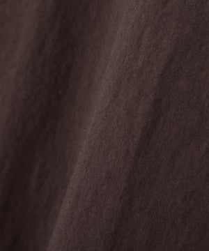 コットンナイロンを高密度に織り上げた、適度なハリとコシのある素材が特徴のジップブルゾン。天日干し風の自然な風合いと撥水性を備え、軽やかさと実用性を兼ね備えた仕上がり。