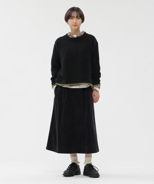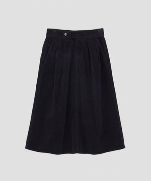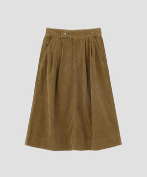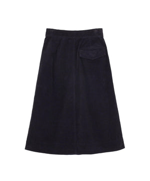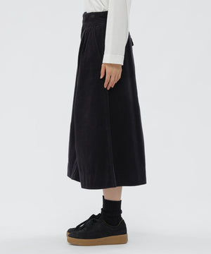 太番手のコットン糸を高密度に織り上げたライトウェイトのコーデュロイスカート。ワッシャー加工とタンブラー加工を重ねることで程よい柔らかさを加え、パイルを立たせて色に奥行きを持たせた、表情の豊かな仕上がり。