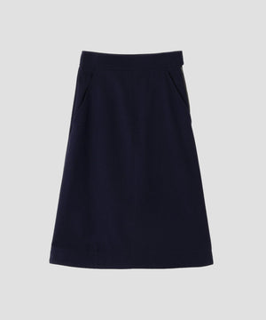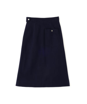 英国羊毛をブレンドしたウールを使用した、軽やかなメルトン素材のスカート。 薄手ながらもふくらみと奥行きのある表情を持たせるため、組織や起毛、縮絨の工程にまで丁寧に仕上げた素材。