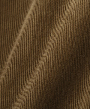 太番手のコットン糸を高密度に織り上げたライトウェイトのコーデュロイトラウザーズ。ワッシャー加工とタンブラー加工を重ねることで程よい柔らかさを加え、パイルを立たせて色に奥行きを持たせた、表情の豊かな仕上がり。