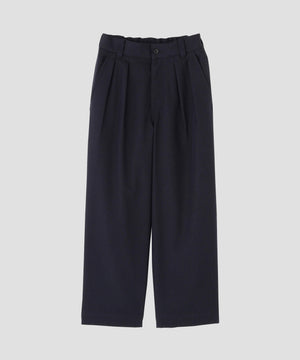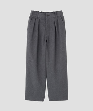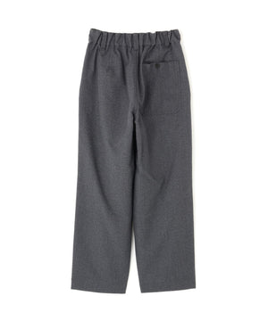 上質なウール混素材で仕立てることで、軽快な夏素材とは違う落ち着いた印象に。ウエストのゴムギャザーが自然な抜け感を生み、リラックス感のあるシルエット。