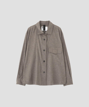 襟は程よく開いたカーブのあるデザインで、前立てはシンプルなボタンスルー仕様。胸ポケットには裏側から補強を施したフラップを付け、ボタンで留められる実用的なつくり。ゆとりあるシルエットで、ミッドレイヤーとしての重ね着や袖のロールアップなど、さまざまな着こなしが楽しめるデザイン。