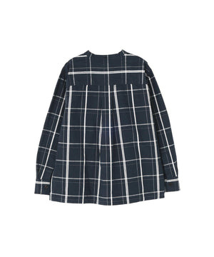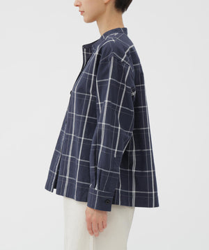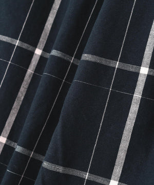 コットンとリネンを組み合わせた、高密度で織り上げたチェックシャツ。リネン特有のフシが生むかすかな表情のゆらぎと、ドライで毛羽立ちの少ないすっきりとした質感が特長。メンズライクな配色の大柄チェックが存在感を添える一枚。