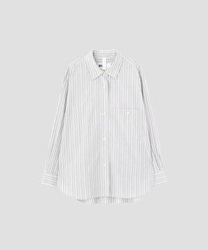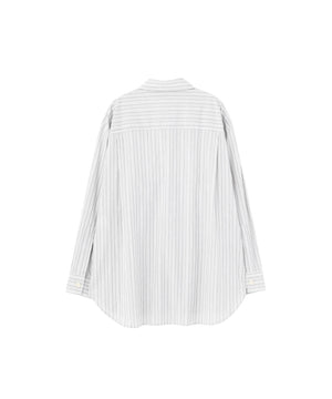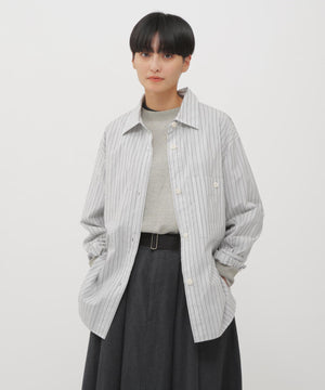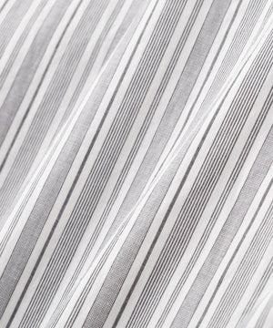 スヴィンコットンと米綿を組み合わせた薄手のポプリン素材のシャツ。グレーとオフホワイトのイレギュラーストライプがクリーンな印象。