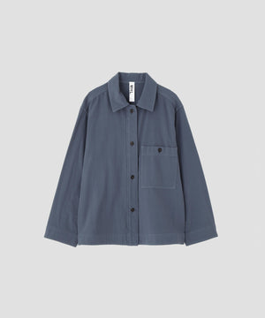パジャマシャツを思わせるリラックスフィットのボクシーシルエット。シンプルなディテールに製品染めならではのヴィンテージライクな表情を加え、着込むほどに風合いを増すシャツジャケット感覚のアイテム。