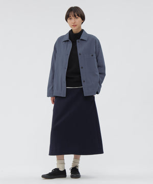オーガニックコットンを二重織りしたダブルガーゼ素材のシャツ。もともとはマスク用に開発された生地をベースにしており、肌当たりのやわらかさと耐洗濯性を兼ね備えた仕上がり。接結点のバランスや特殊な洗い加工で肉感を持たせ、製品染めによる独特の風合いと表情を引き出した一枚。厚みと温かみを備えた素材感が特長。
