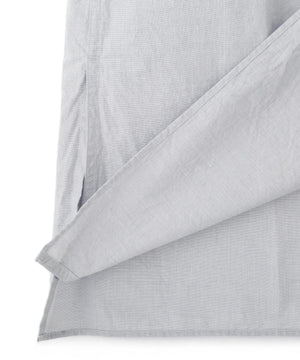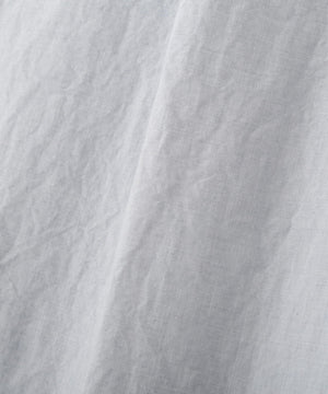 異なる番手と色味のコットン糸を交互に織り上げた、軽やかで膨らみのあるエンドオンエンド素材のドレス。洗いをかけることで原綿の風合いが引き立ち、柔らかく紙のように軽い肌触りに仕上げた一枚。