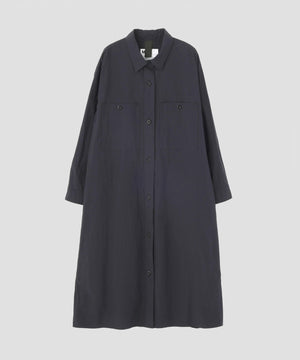 大きなダブルパッチポケットが印象的なワークシャツドレスは、ゆとりのあるサイズ感と長めの着丈で、暑さの残る時期にも快適な着心地。高密度のきれいな生地感に、ダブルステッチによるパッカリングを加えることで、カジュアルな雰囲気に仕上げたデザイン。