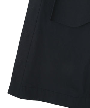 作業着のオーバーオールから着想を得たデザイン。スラントポケットや太めの比翼前立て、セルフベルトなどの実用的なディテールを取り入れ、カジュアルなムードにまとめた一枚。