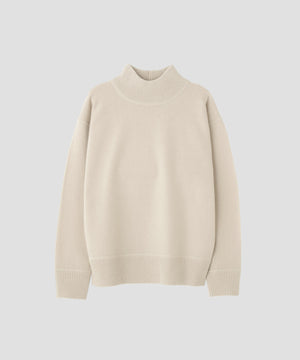 ヴィンテージのカットソーに着想を得たボトルネックがポイントで、ゆったりとしたリラックスシルエットに仕立てた一着。カバーステッチを効かせ、スウェットのようなニュアンスを添えたデザイン。