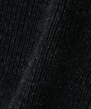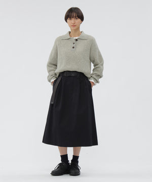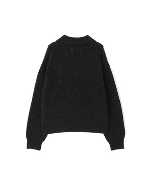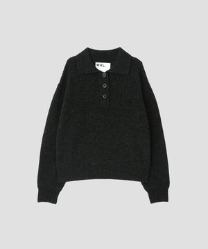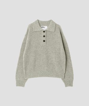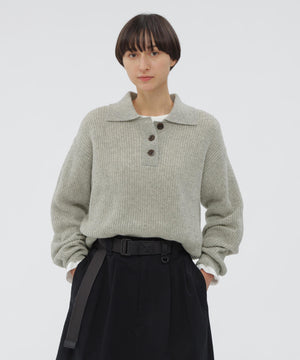 大きな3つのボタンを配したポロセーターは、畦編みの見た目に比べて驚くほど軽やかで、冬のレイヤードにも活躍する一着。