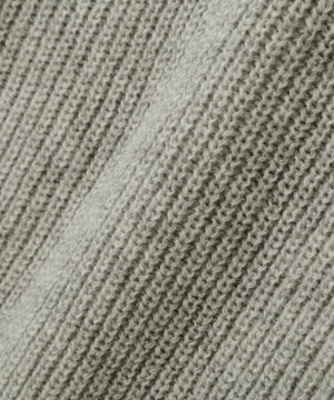 スーパーファインメリノを原料にしたウォッシャブルウールのニット。紡毛紡績機で仕上げることで軽さとふくらみを持たせた糸が特長で、通常のウォッシャブル糸にありがちな重さや冷たい風合いを抑え、柔らかな着心地。