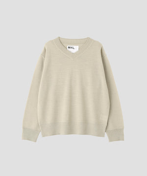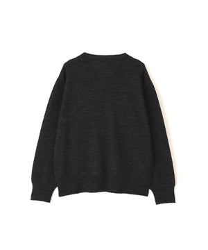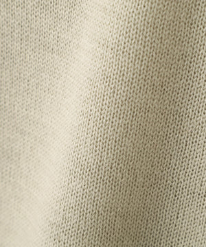 ヴィンテージの子供服から着想を得て選んだ糸を使用したニット。エイジングを思わせるドライな質感と、薄手ながらハリとコシのある風合いが特徴。英国羊毛をブレンドした梳毛糸で表現した素材。