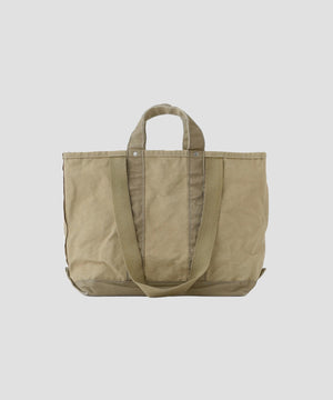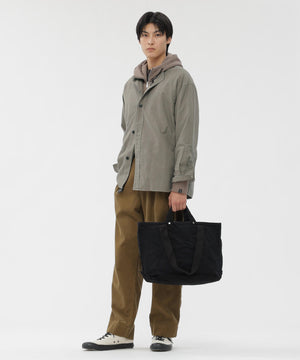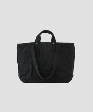 コットンキャンバスにパラフィン加工を施した、テンベアを代表する生地を使用したトートバッグ。セルビッチを活かした仕様と太番手のステッチがアクセント。製品洗いによるアタリが生まれ、1点ごとに異なる表情を楽しめる仕上がり。テンベアの長年のノウハウによって実現したMHL.だけの特別なシリーズ。