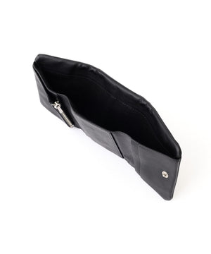 植物性タンニンでなめした、ナチュラルな風合いのヌメ革を使用した三つ折り仕様のコンパクトウォレット。縫製や金具を表に出さない袋縫いにより、革本来の質感と、ラフな仕上げから生まれる柔らかなフォルムが特長。