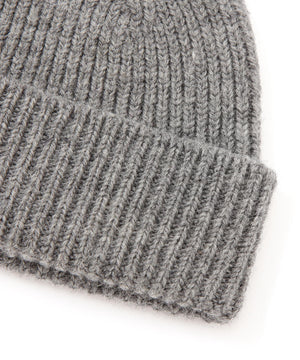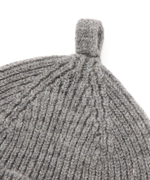 シェットランドウールをリブ編みにしたスコットランド製のビーニー。トップに配したループがさりげないアクセントとなったシンプルなデザイン。
