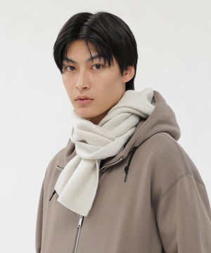 弾力のあるニュージーランドウールを使用したスカーフ。仕上げに縮絨をかけることで、メルトンのようなドライタッチと程よい厚みを持たせたフェルト素材。ハリとコシがありながらも柔らかく、暖かみのある風合いが特徴。
