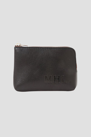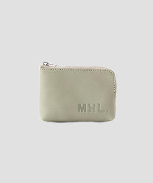 MHL.定番のレザーアクセサリーコレクション。ディテールを可能な限りそぎ落とし、シンプルさを求めたポーチ。牛革らしいシボ感となじみのよい厚さ、ラウンドしたファスナーの形状が特徴のアイテム。リップなどの少量のコスメ、カードが入るサイズ感。