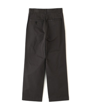 高密度に織り上げたチノクロスを用いたトラウザーズ。着用と洗濯を重ねることでやわらかく馴染み、自然な風合いが増していく素材感。製品洗いによる落ち着いた表情も特長。