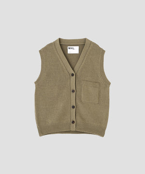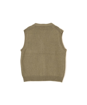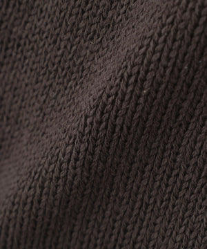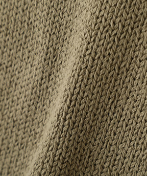 国内で紡績されたリサイクルコットン100%の糸を用いた、やわらかな質感のニット。紡績過程で生まれる落ち綿を再利用した素材で、手紡ぎのようなぬくもりと整った表情をあわせ持つ仕上がり。