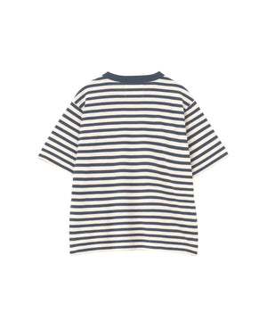 コントラストの効いたフライスリブがポイントのデザインで、ボクシーフィットにワイドスリーブを合わせたバランス。さらりとした生地の風合いとよく合う一着。