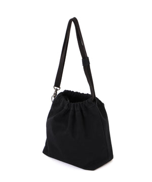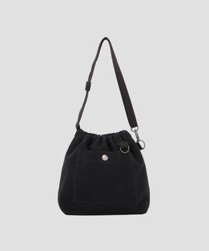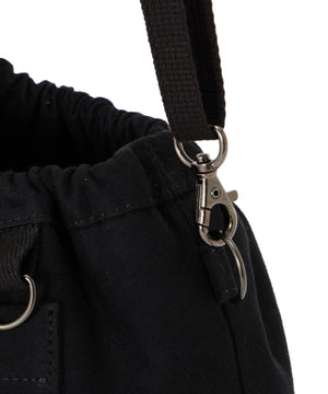 コロンとした丸みのあるフォルムが特徴で、短く持っても肩掛けとしても使える2WAY仕様のハンドルがポイント。外ポケットやDカンをあしらい、使いやすさにもこだわったデザイン。程よいサイズ感で、デイリーに活躍する巾着バッグ。
