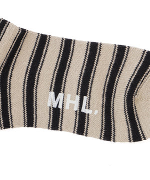 ヴィンテージのニットから着想を得た、ストライプ柄のコットンソックス。コットンならではのナチュラルなムラ感が、ウールソックスのような温もりを感じさせる素材。