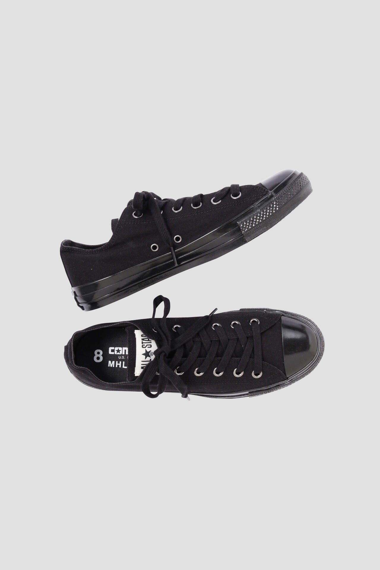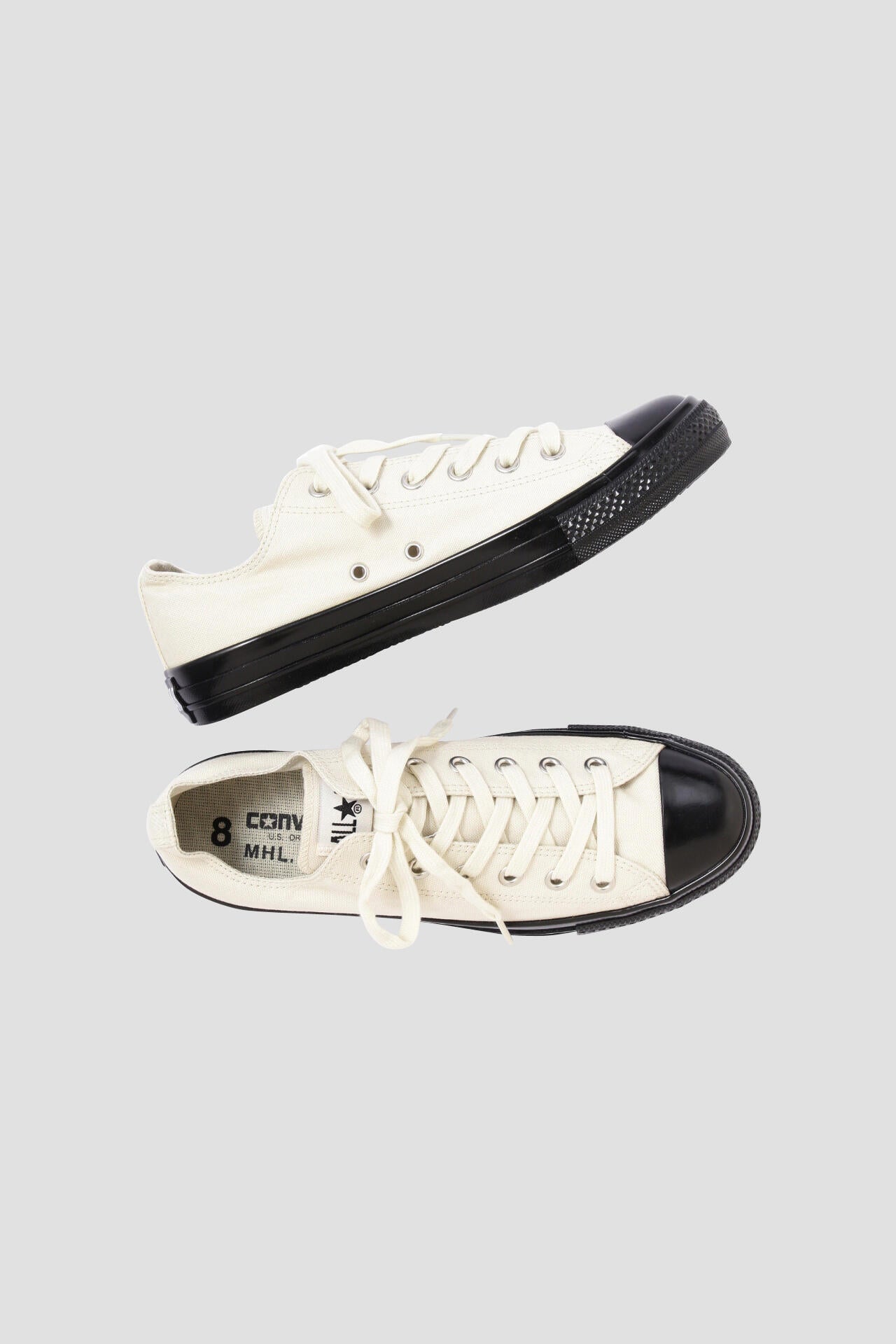MHL.とCONVERSE(コンバース)とのコラボレーションアイテム。CONVERSEの原点とも言える古き良きアメリカのヴィンテージテイストを追求したU.S.ORIGINATORというモデルをベースに別注アイテムを作成。艶のあるアウトソールやコットンシューレースなど、ヴィンテージライクな仕様のベースを用い、アッパー素材にコットンキャンバスを使用したアイテム。
