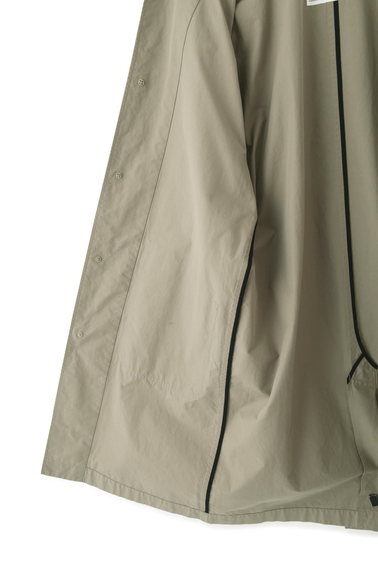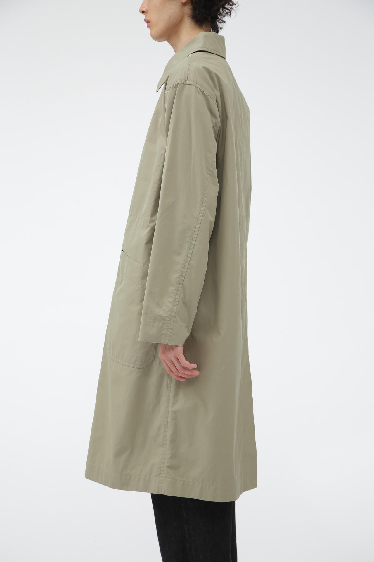 薄手ながらも高密度に織られたコットンポプリン素材を使用したコート。コットン本来の風合いを活かしつつ、凹凸感のあるテクスチャーが特徴。涼しげな印象に加え、シャワープルーフ加工を施すことで軽量で機能的な仕上がり。