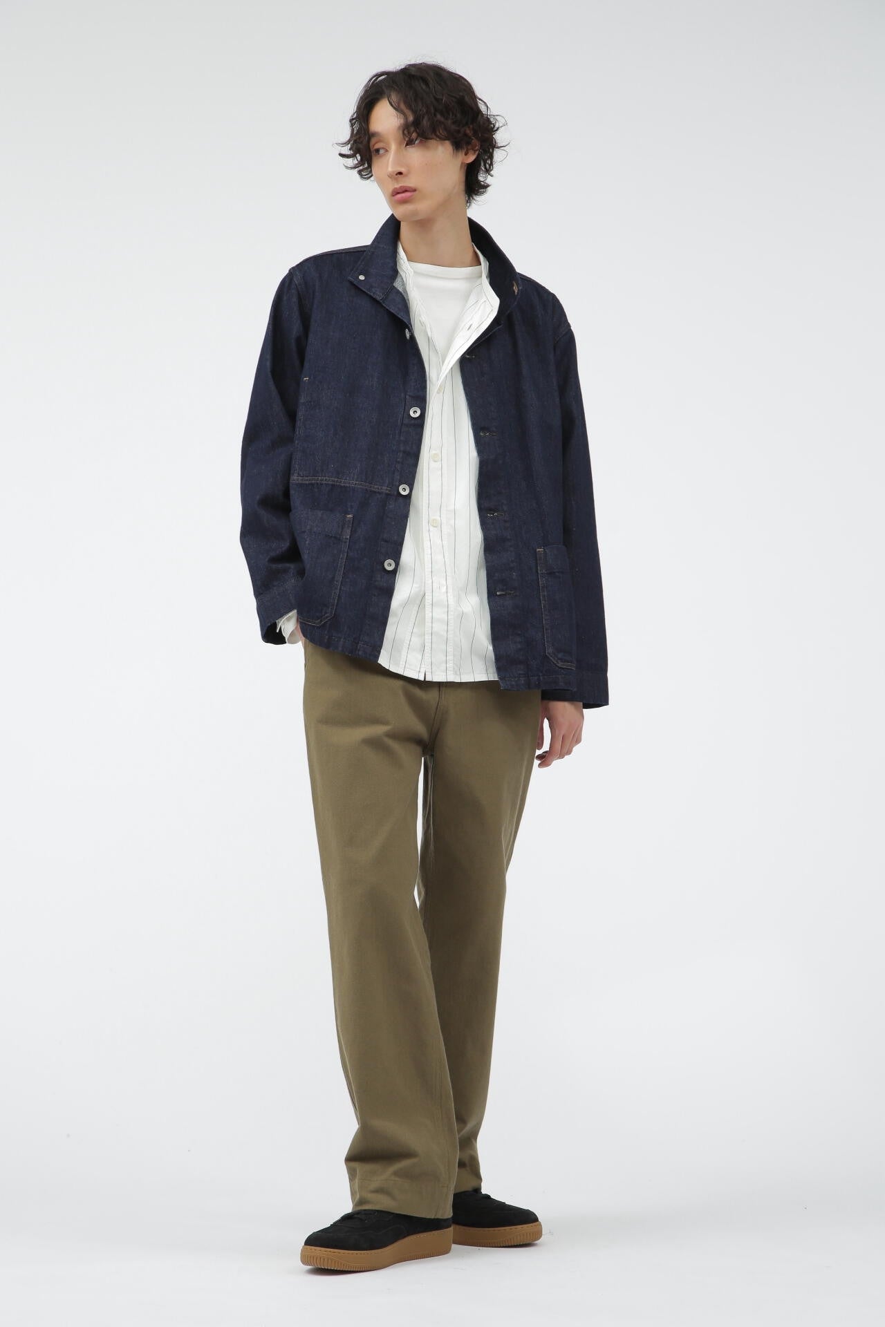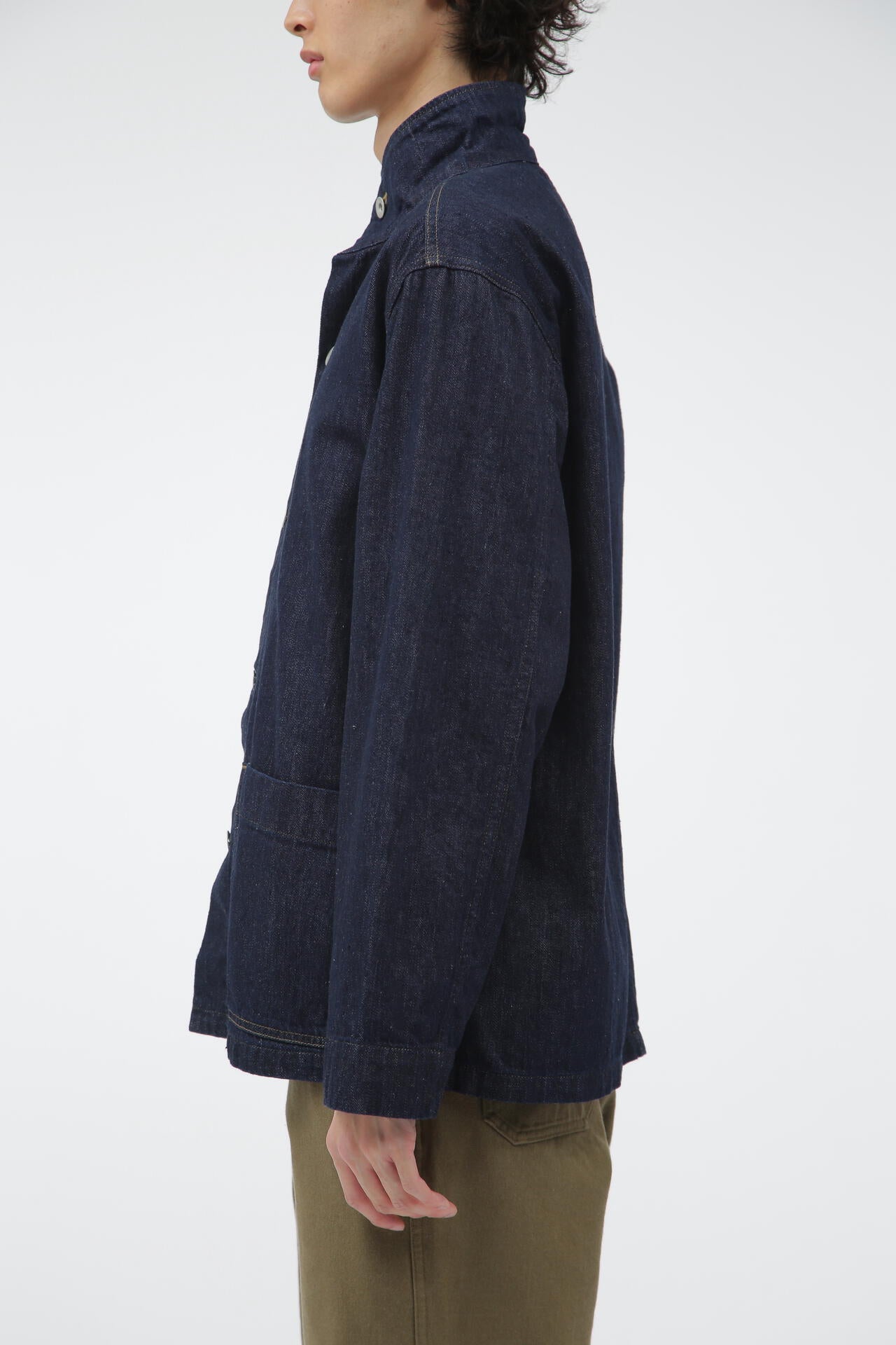 薄手ながら、膨らみとコシを持った丈夫なライトオンスのデニムブルゾン。襟は折っても立てても着用可能で、フロントのパッチポケットや内ポケットのステッチアウトがポイント。ややコンパクトなシルエットは、トラウザーズとも相性良いデザイン。