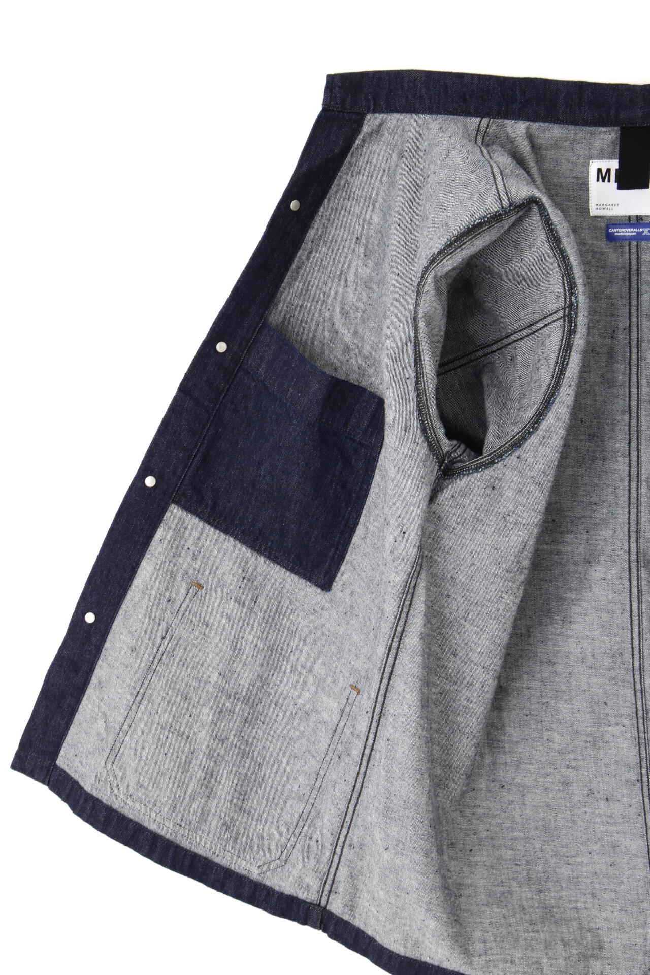 CANTONは 1963年に日本で初めてアメリカ産に引けを取らない本格国産ジーンズとして誕生。MHL.では不均一なネップが特徴のCANTONオリジナルの生地を使用。ネップが相まってワークウエアらしい粗野感のバランスが良く、着用する程に現れるタテ落ちが特徴。