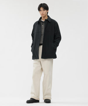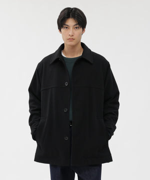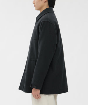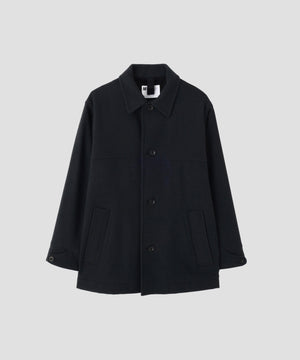 ウール本来の弾力とコシを生かしたメルトン素材のコート。タテ糸にブリティッシュウールを組み合わせ、ドライな質感とカジュアルな表情を引き出した仕上がりで、ほどよい光沢と軽さを備えた上品な印象。