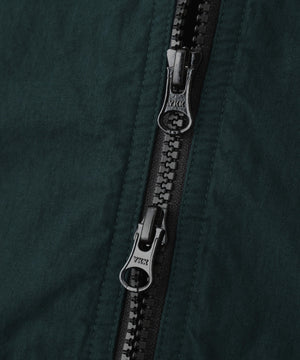コットンナイロンを高密度に織り上げた、適度なハリとコシのある素材が特徴のブルゾン。天日干し風の自然な風合いと撥水性を備え、軽やかさと実用性を兼ね備えた仕上がり。