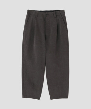 デニムと同様の染色を取り入れた、墨黒カラーのコットンドリル素材を使用したトラウザーズ。白くなりすぎないフェード加工により、ほどよく力の抜けた上品な表情が特長。