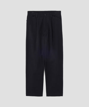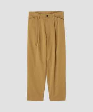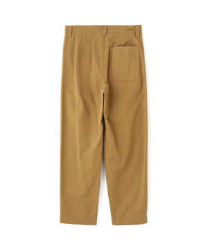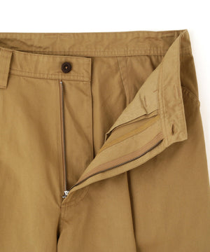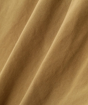 高密度に織り上げたチノクロスを使用したトラウザーズ。足袋の底にも使われるほど丈夫な素材で、硬さと光沢を備えながら、洗うほどに柔らかく馴染み、風合いを増す経年変化が特長。