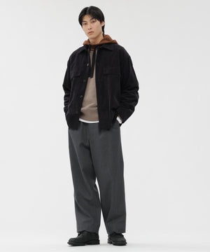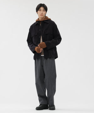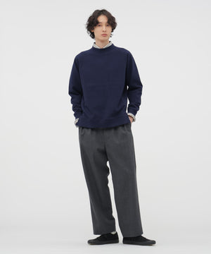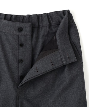 ウールとコットンを組み合わせたドライな質感のトラウザーズ。タテ糸にウールとコットンを掛け合わせ、ヨコ糸には風合いの異なるウールを使うことで、奥行きのある表情と立体感を持たせた素材。綾目の立ったドリル組織で、ほどよくカジュアルな中に上品さを感じる仕上がり。ウールの温かみとコットンのハリを併せ持ち、長い季節で活躍するアイテム。