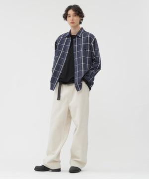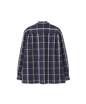 コットンとリネンを組み合わせた、高密度で織り上げたチェックシャツ。リネン特有のフシが生むかすかな表情のゆらぎと、ドライで毛羽立ちの少ないすっきりとした質感が特長。シックな配色の大柄チェックが存在感を添える一枚。