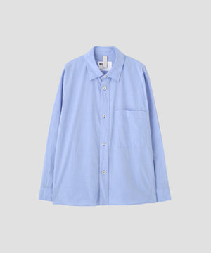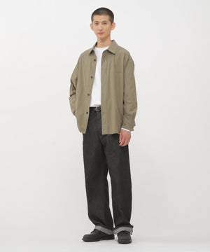 コットンシャンブレーを使用したシャツ。カジュアルな番手の糸を高密度に織り上げ、ワッシャー加工でペーパーライクな質感に仕上げた素材感が特長。軽やかさと張りをあわせ持つ風合い。